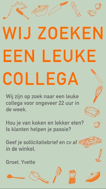 Vind je het leuk om goede kookspullen te verkopen en wil je graag naar klanten je kookenthousiasme overbrengen? Stuur dan snel een mailtje, voorzien van je CV naar: Yvette@dekookwinkel.com