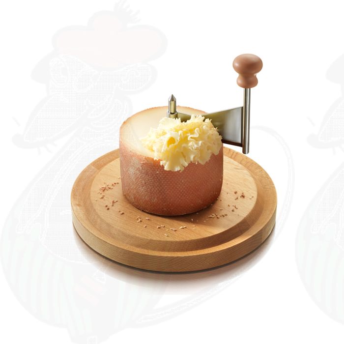 Je maakt de mooiste kaaskrullen met deze beukenhouten kaaskruller. De vijf pinnetjes in het plateau zorgen voor een extra goede grip op je Tête de Moine kaas. Zo weet je zeker dat de kaas goed op zijn plek blijft zitten, als je het roestvrijstalen mes ronddraait. De kaaskruller is eenvoudig te demonteren. Was hem na gebruik even met de hand af en hij is zo weer klaar voor gebruik.