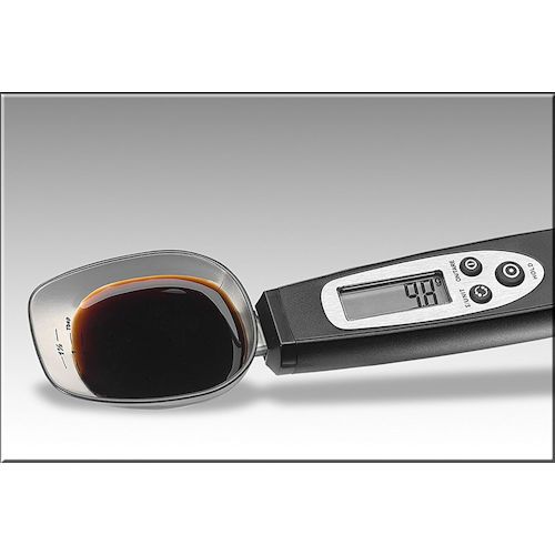 De Eva weeglepel weegt ultra-precies: vanaf 0,1 gram nauwkeurig. Hij weegt tot 500 gram en is eenvoudig op nul terug te zetten bij het wegen van meerdere ingrediënten. Het display is verlicht en goed leesbaar. Met een Hold functie voor permanente weergave en voorzien van duidelijke silicone bedieningsknoppen. Uitermate geschikt voor het afwegen van specerijen en gist.