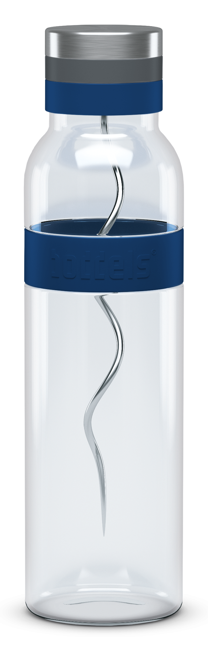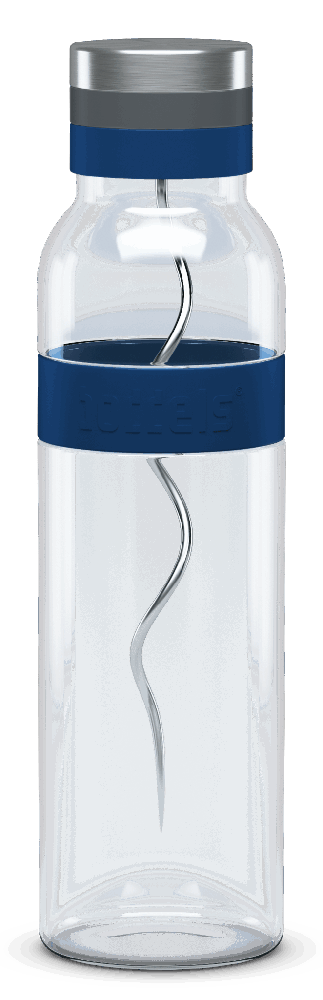 Schuif je favoriete fruit, groente, kruiden of andere smaakmaker aan de spiraal en vul de fles met water.