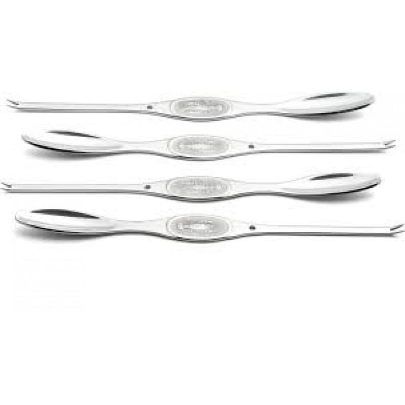 Zes smalle, lange kreeftenvorkjes in roestvrij staal om alle stukjes vlees uit de scharen en de poten van de kreeft te halen. De fijne vorkjes zijn speciaal gevormd om in de kleinste hoeken te komen, wat met een normaal bestek onmogelijk is. Onmisbaar voor kreeftgastronomen.
