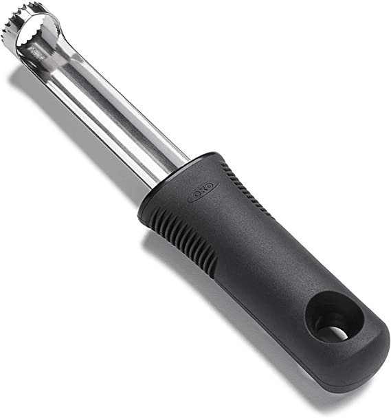 Met deze Oxo appelboor, voorzien van een groot steekgat,verwijder je eenvoudig het klokhuis uit appels. De appelboor glijdt makkelijk door een appel en verwijdert netjes het klokhuis, deze komt met een simpele schudbeweging los van de boor. De zachte, comfortabele greep absorbeert de druk tijdens het gebruik en is antislip, zelfs wanneer je handen nat zijn. De greep is bovendien voorzien van een ophangoog. De appelboor is gemaakt van roestvrij staal en mag na gebruik in de vaatwasmachine.