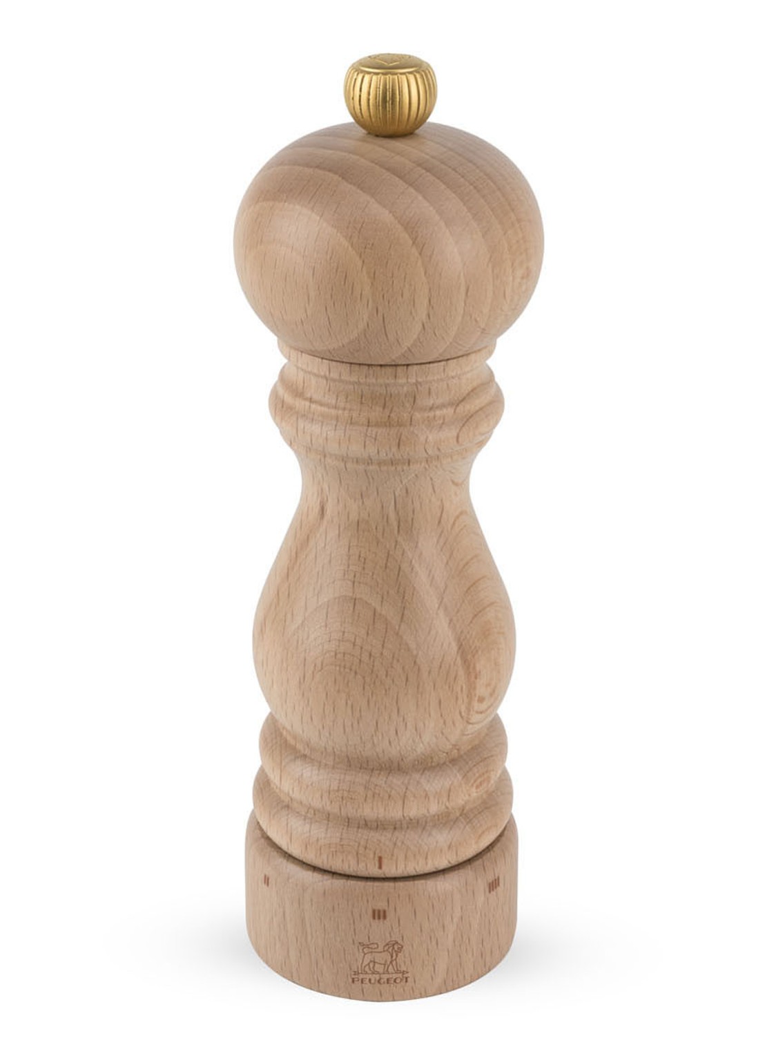 Peugeot Paris Pepermolen naturel, de pepermolen voor in de keuken. Deze pepermolen is gemaakt van beukenhout en het maalwerk is van staal. De grofheid kunt u instellen met behulp van de ring. De pepermolen van Peugeot is leverbaar in verschillende maten. De lengte van deze pepermolen bedraagt 18cm.