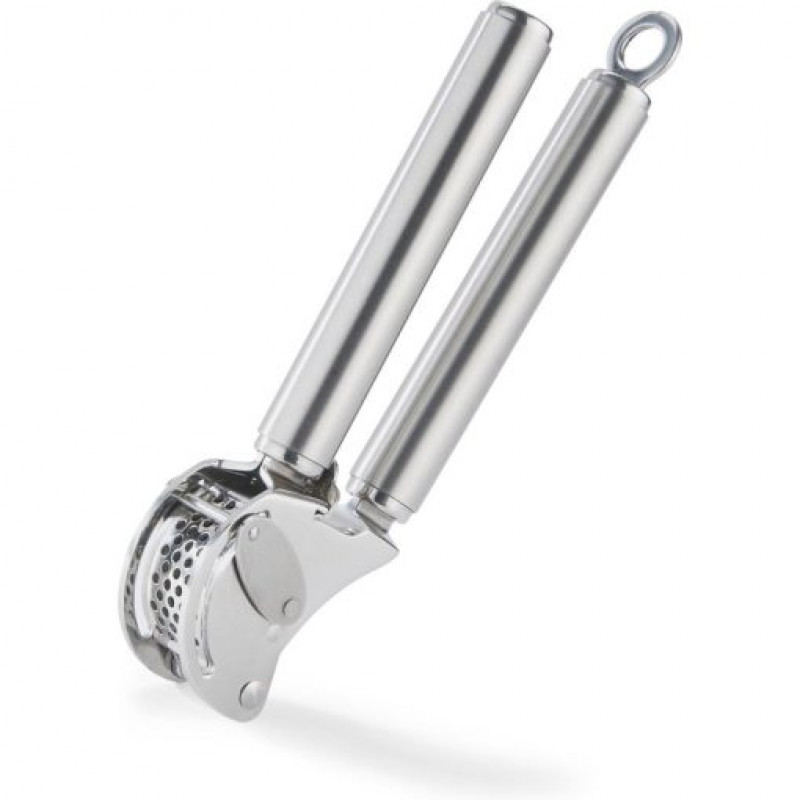 De Rösle knoflookpers is vervaardigd uit 18/10 roestvrij staal. Zelfs ongepelde knoflooktenen kunnen eenvoudig worden geperst dankzij het hevelmechanisme van deze knoflookpers. Goed uitgebalanceerd en ligt hierdoor fijn in de hand. Ook geschikt voor grote tenen knoflook.